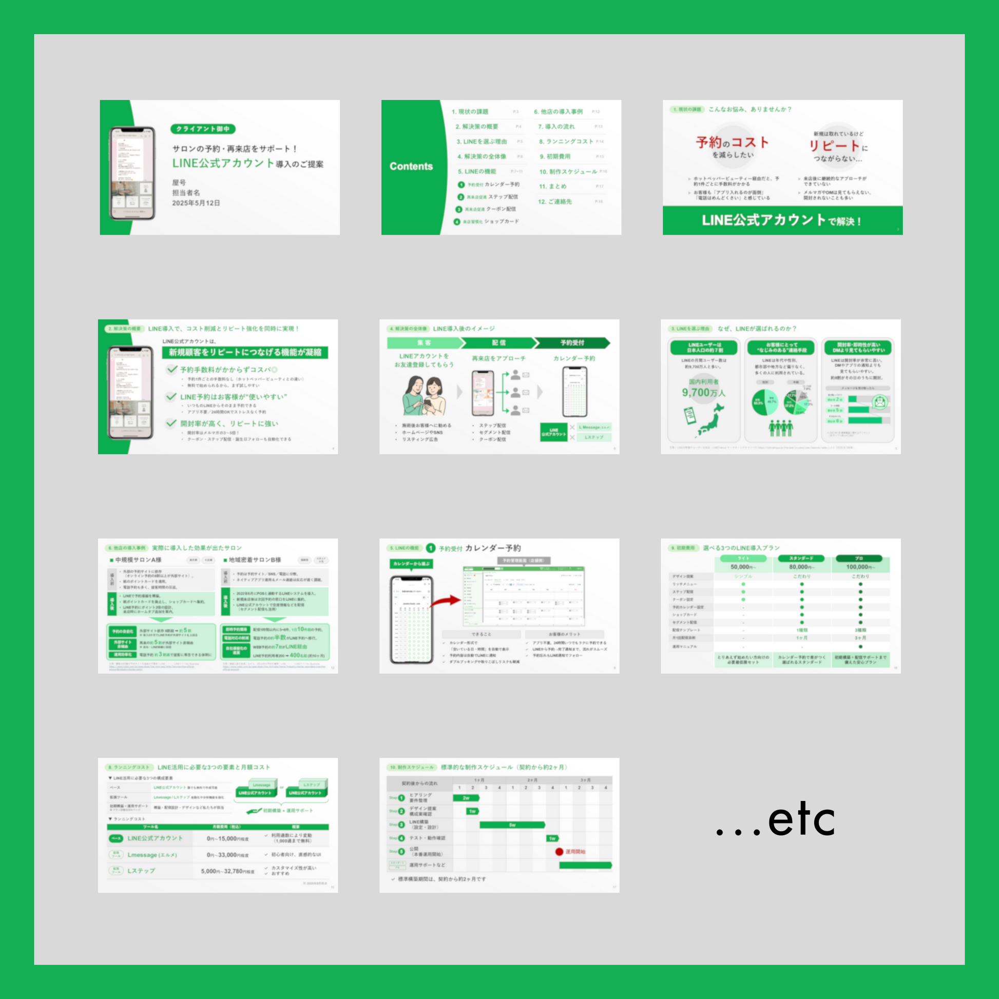 このテンプレートは、LINE構築の提案にすぐに使え、実務に即した構成です。